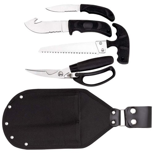 New Maxam 5pc Field Set Game Shears Skinning Knife Gut Hook Caping Knife Heavy-Duty Nylon Sheath